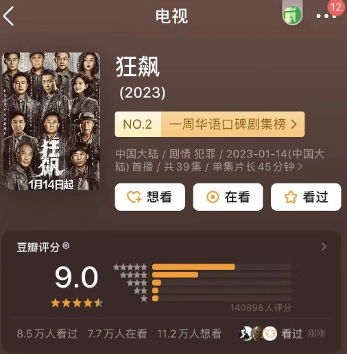 近段時(shí)間,掃黑除惡題材劇《狂飆》,在一眾新春大戲中,可謂收視、口碑一路“狂飆”,成為開(kāi)年爆款劇。